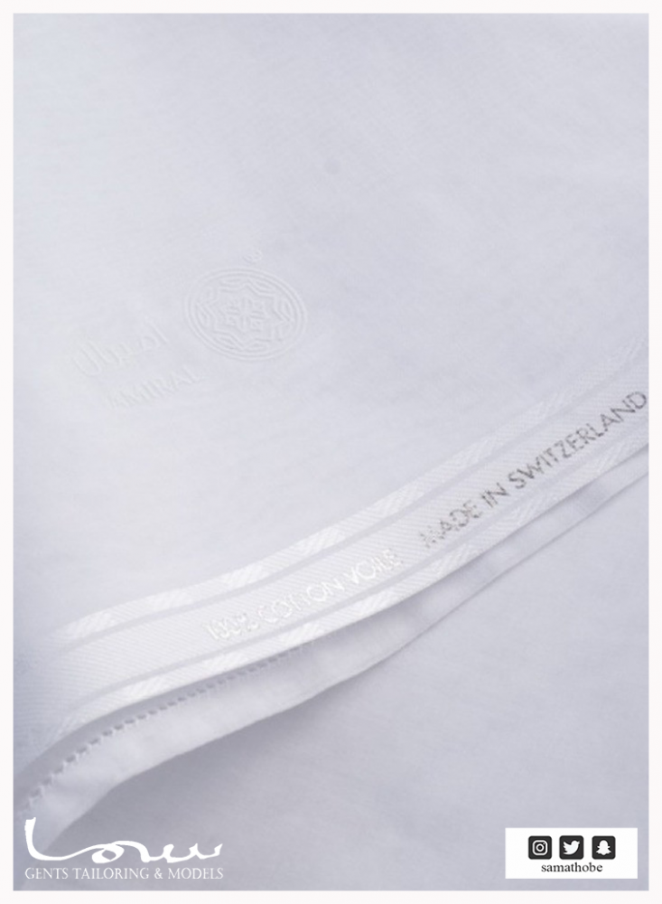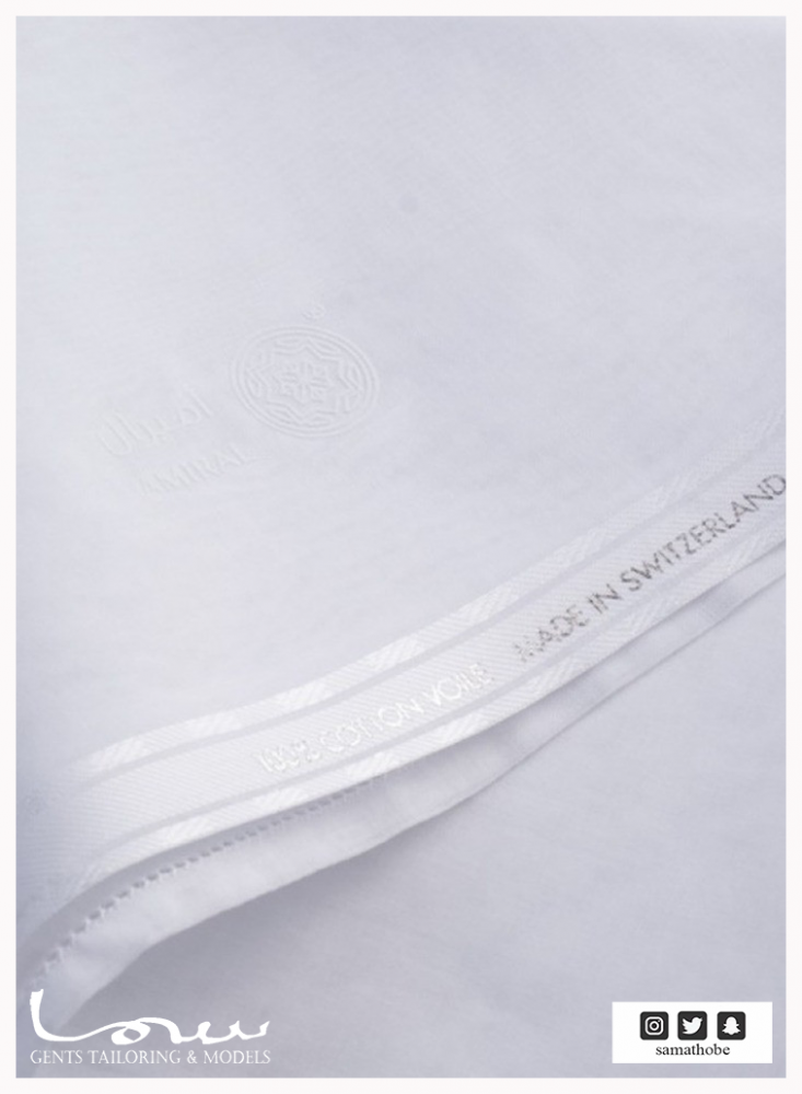 غتر أميرال، جودة سويسرية أصلية ..الغترة الأفضل على الإطلاق صنعت خصيصا للسوق الخليجي بصناعة وجودة سويسرية لا تضاهى، تجذب الانتباه فور ارتدائها على الرأس، يفضلها الجميع وينصحوا باقتنائها لخصائصها الحيوية وقطنها الخالص وخيوطها القوية المتجانسة والمتماسكة، ثابتة على الرأس لونها أبيض ناصع، خفيفة الوزن وبسيطة المظهر