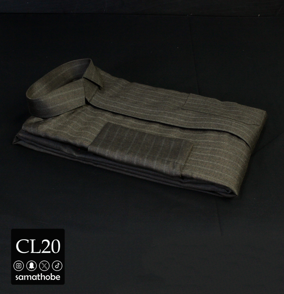 ثوب جاهز رجالي شتوي بقماش لون بني مقلم خفيف وزن 270 جرام خفيف وناعم مناسب للمناطق معتدلة البرودة
