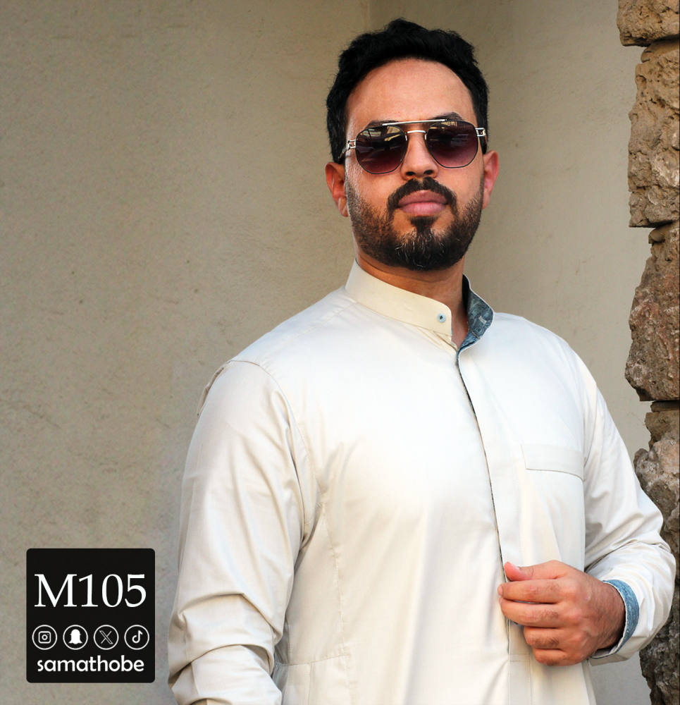 قماش نسبة 35% لون بيج فاتح خفيف وصيفي وتصميم كاجوال شبابي بإضافة تدخيلة انيقة متناسقه مع لون الثوب