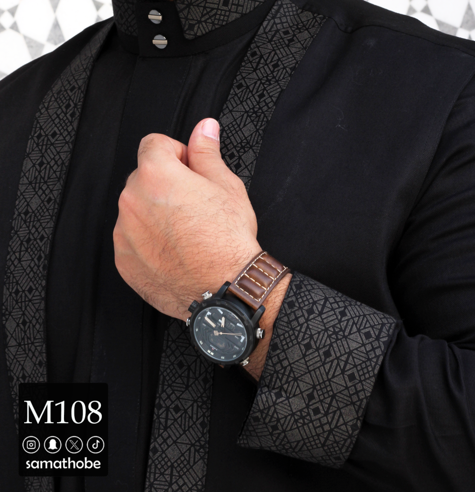 قماش قطن 100% لون اسود خفيف وبارد وتصميم فخم وانيق بإضافة تدخيلة بنقش مميز متناسق مع لون الثوب