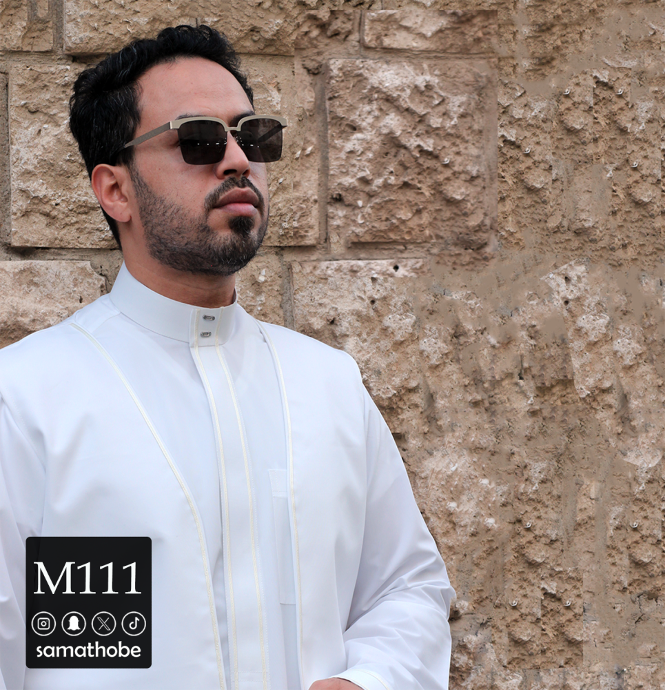 قماش بولستر ربع وقفه لون سكري وتصميم بطريقة مميزة بالقيطان ثوب رسمي مناسب للاعياد والمناسبات