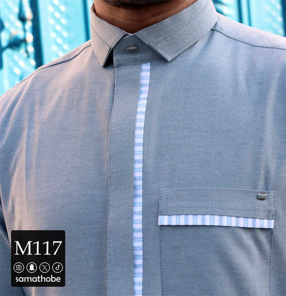 قماش قطن 63% لون مميز بين الرمادي والبحري خفيف صيفي بارد وتصميم كاجوال شبابي بإضافة تدخيلة متناسقة مع لون القماش