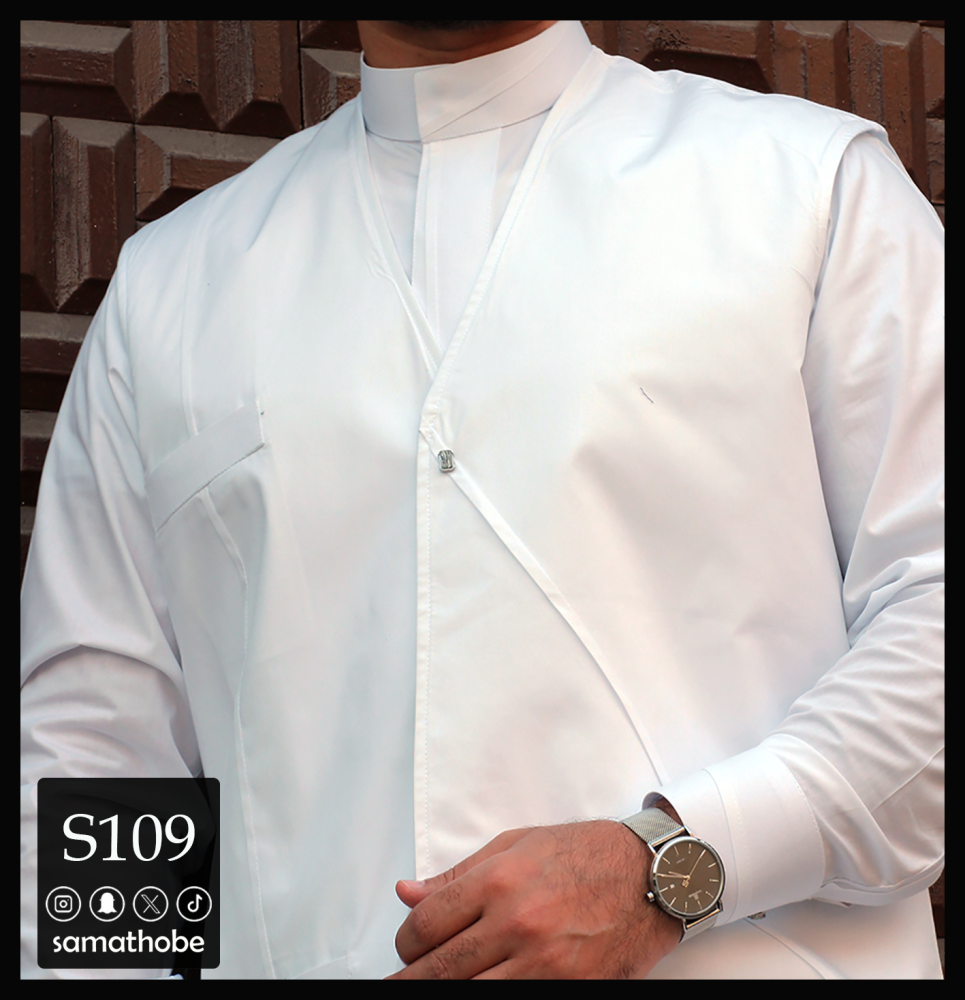 سديري لون ابيض بقماش قطن بتصميم مميز رسمي وانيق