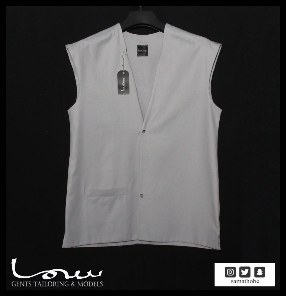 سديري لون رمادي فاتح بنفس خامه الثوب مقلم مع اضافه اكسسوار فضي