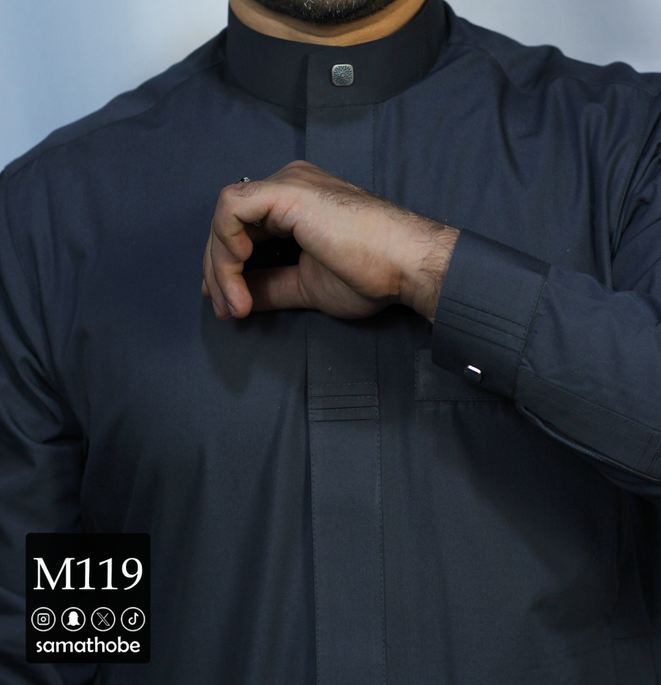قماش قطن 35% لون رصاصي مميز مع تصميم خفيف وانيق واضافه اكسسوار بنقش اسلامي